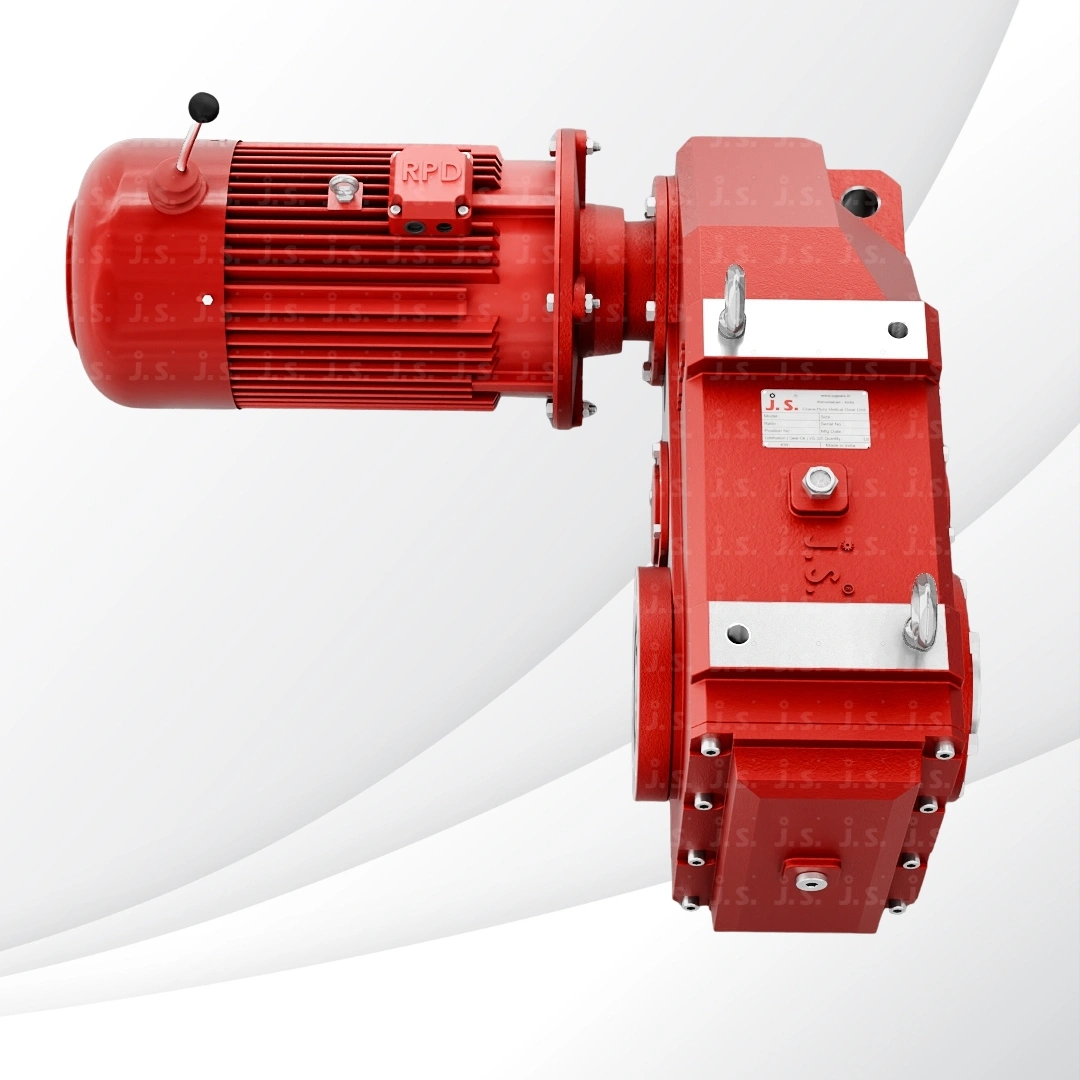 The HT Series Geared Motor by JS Gear is purpose-built for Single Girder EOT Crane hoisting applications. Designed with precision and reliability in mind, it ensures smooth performance, effortless fitment, and long-lasting durability.